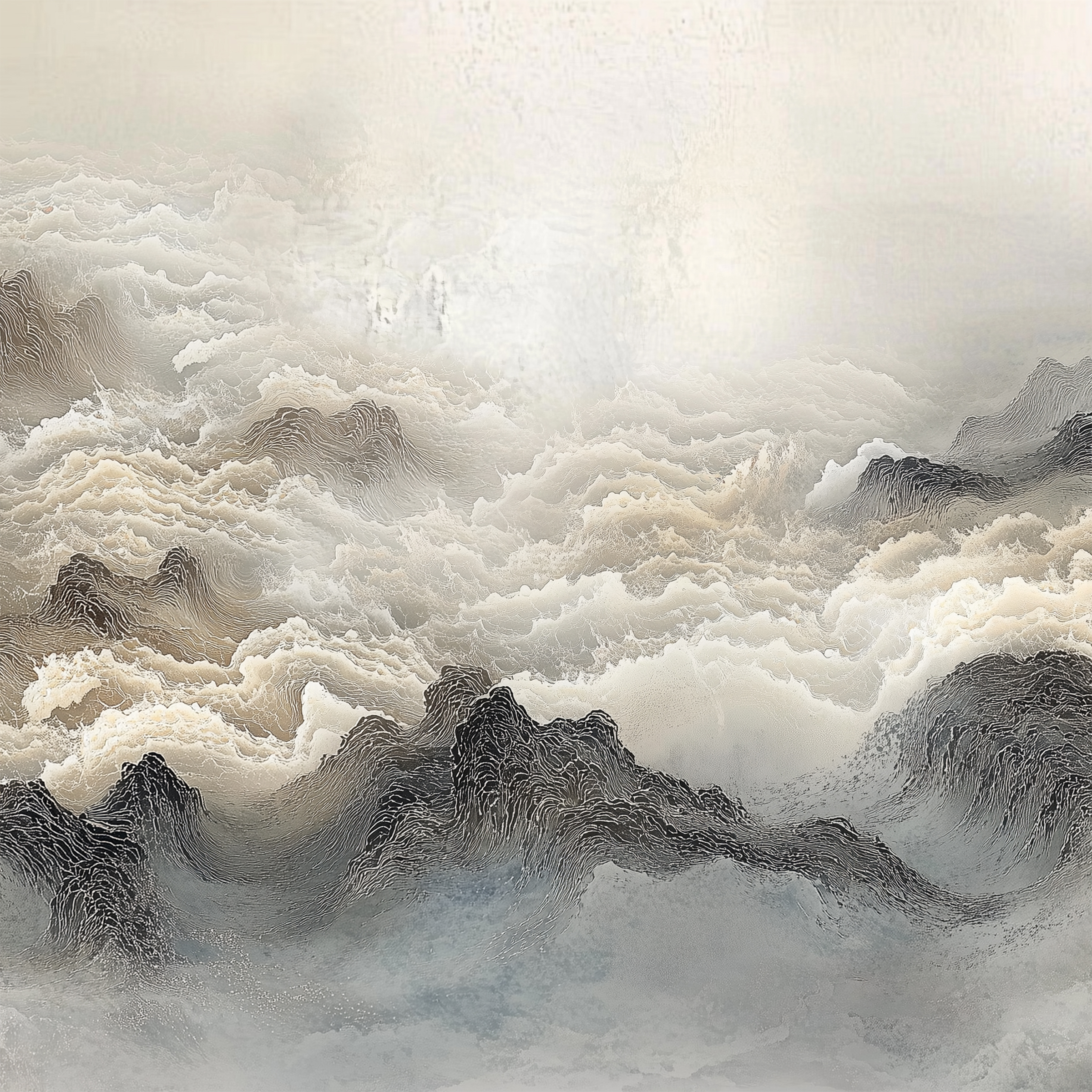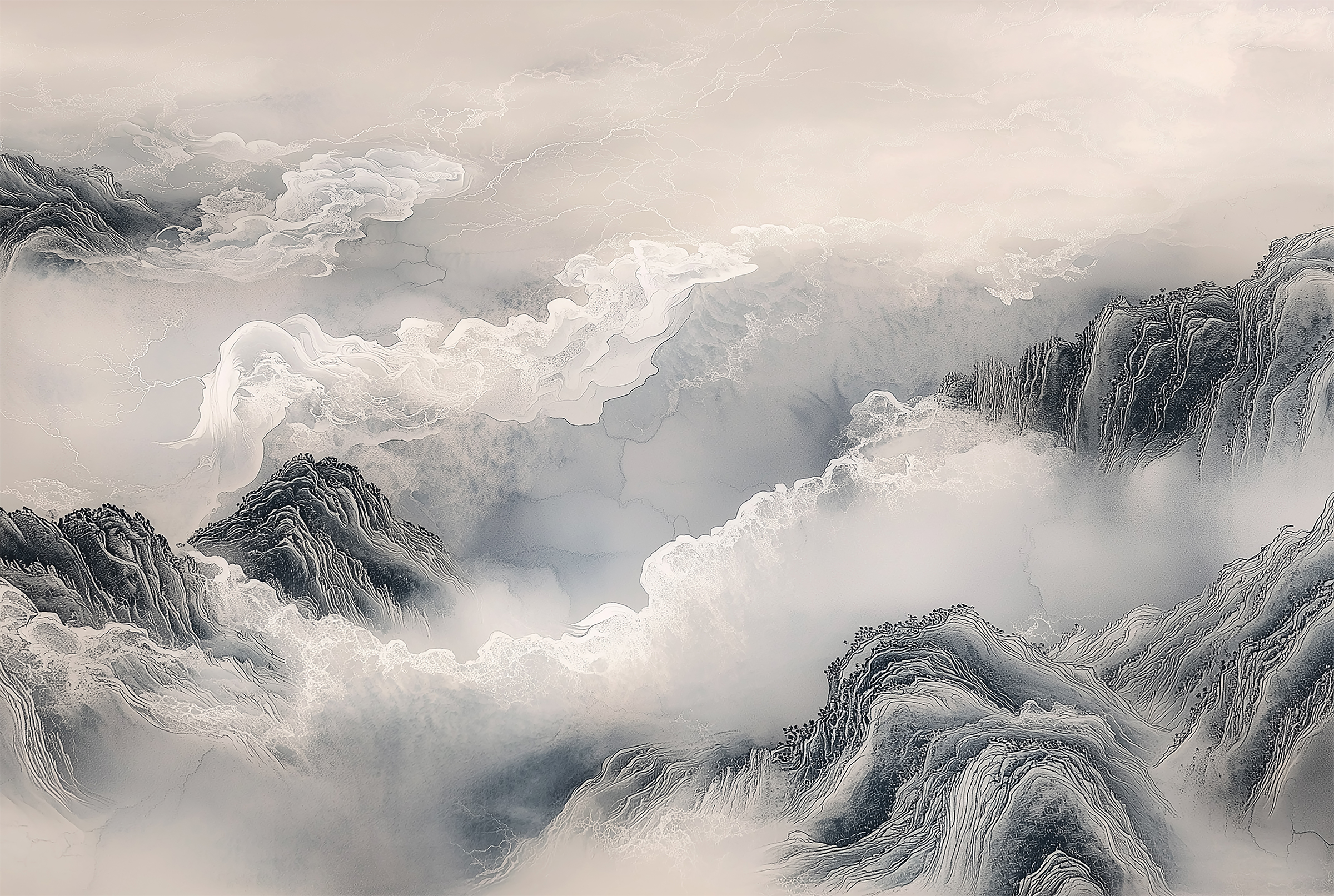 This customizable landscape artwork centers on the elements of mountains and clouds, evoking a serene, Zen-like atmosphere. Created digitally, it captures the depth and flow of traditional ink painting, and can be produced as a high-quality print. Additional techniques—such as metallic finishes or embossed textures—can be applied to enhance its visual presence. Ideal for hotels, lobbies, clubs, or any refined interior space seeking a sense of stillness and Eastern elegance.